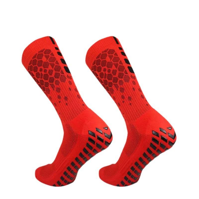 Chaussettes de football à carreaux en maille tricotée, antidérapantes, mi-mollet, épaisses, antibactériennes, en polyester, pour compétition et entraînement professionnels, séchage rapide