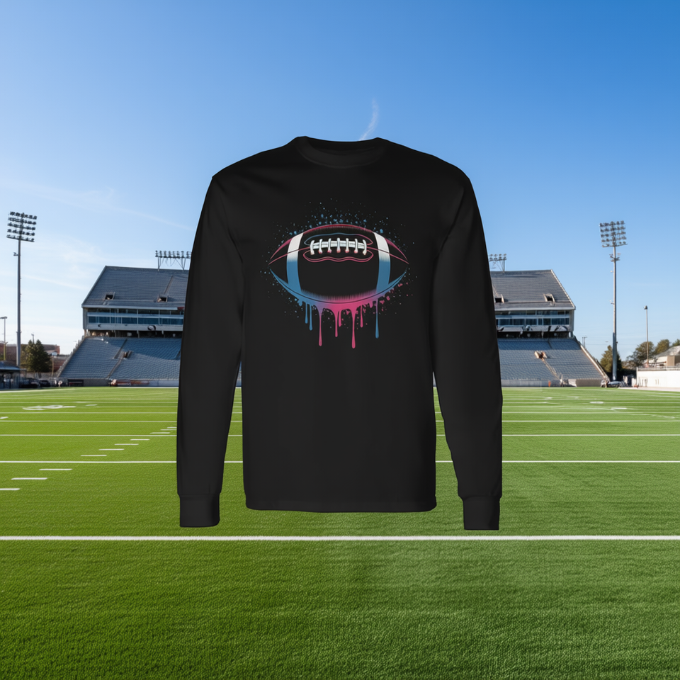T-shirt à manches longues avec graphiques Football Drip, noir, taille S, pour les fans et les joueurs
