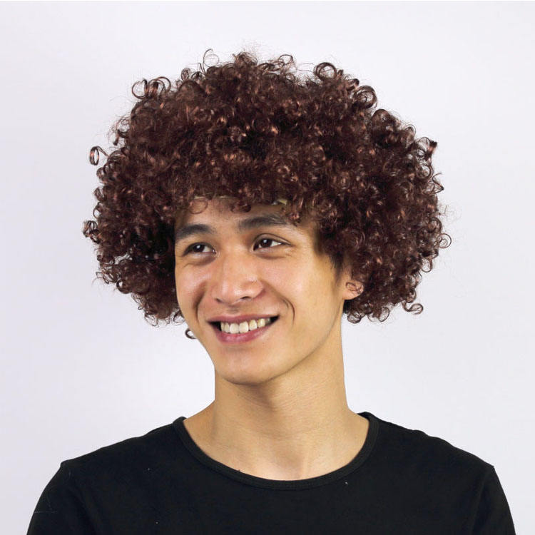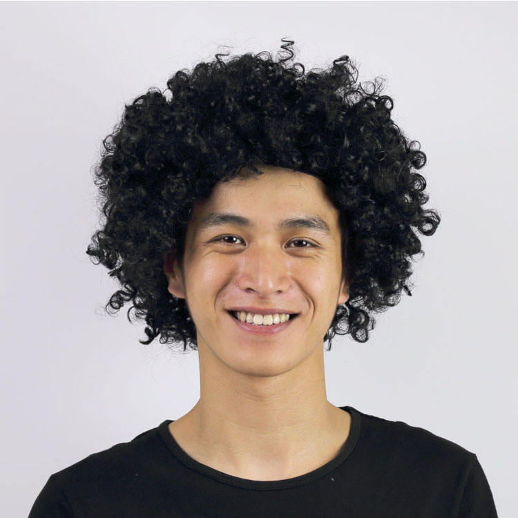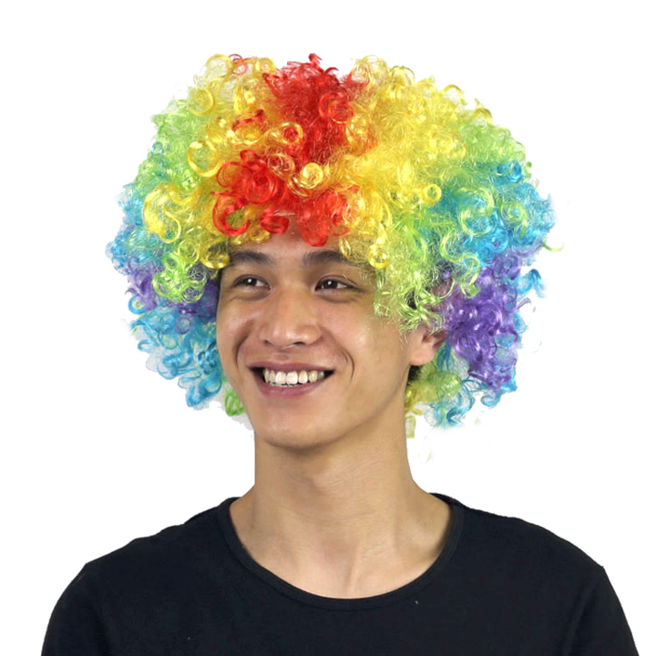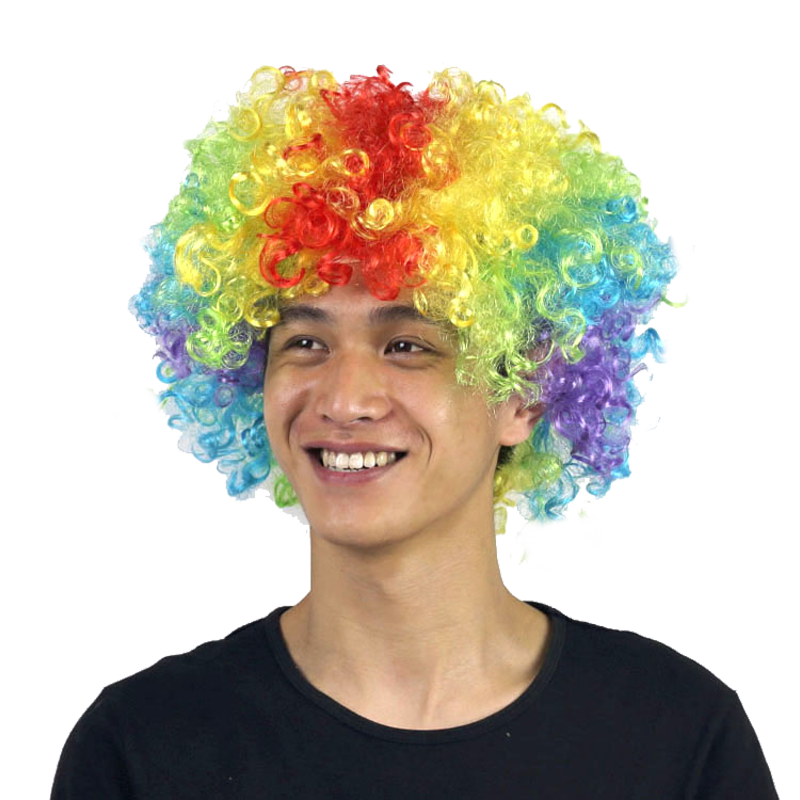Perruque Afro Clown pour Fans de Football, Cheveux Courts Bouclés en Fibre Synthétique Protéinée, Fabrication Mécanique, Idéale pour Fêtes, Halloween et Carnaval, Vente en Gros à Prix Abordable