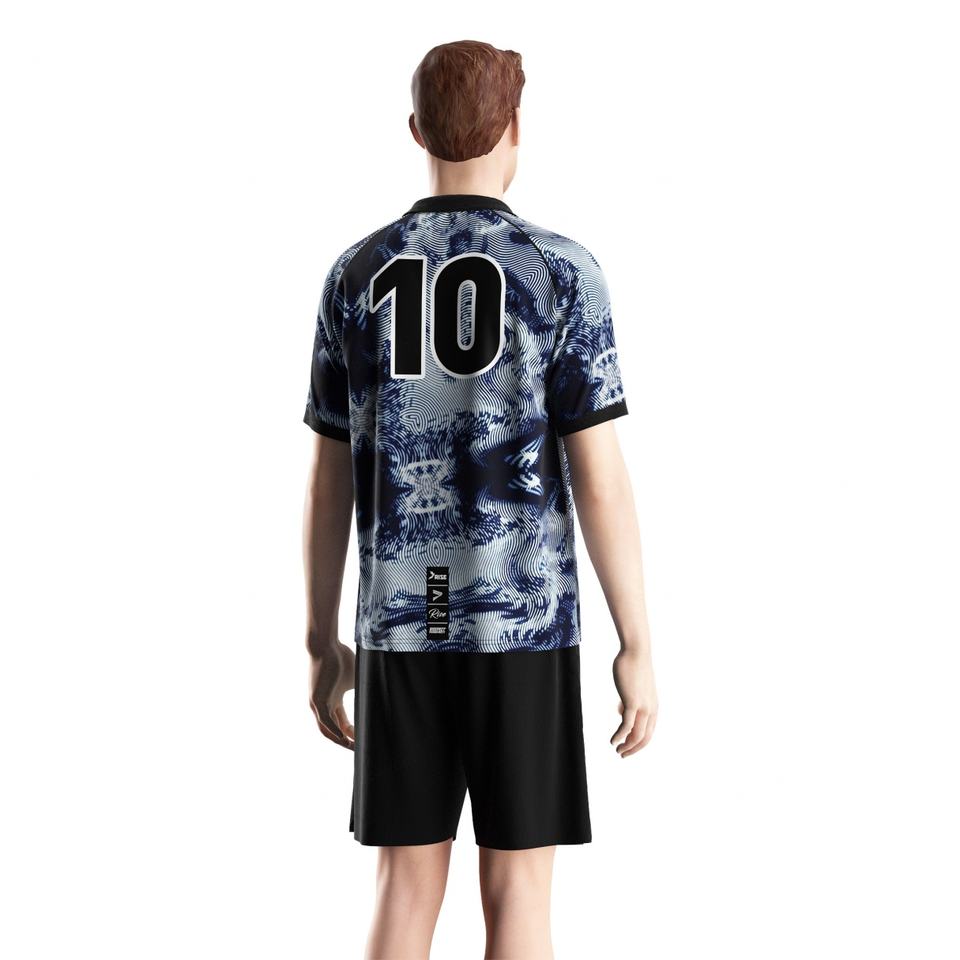 Maillot de football avec col à insert triangulaire, tissage à séchage rapide et configurations de garnitures personnalisées pour les échauffements avant le match