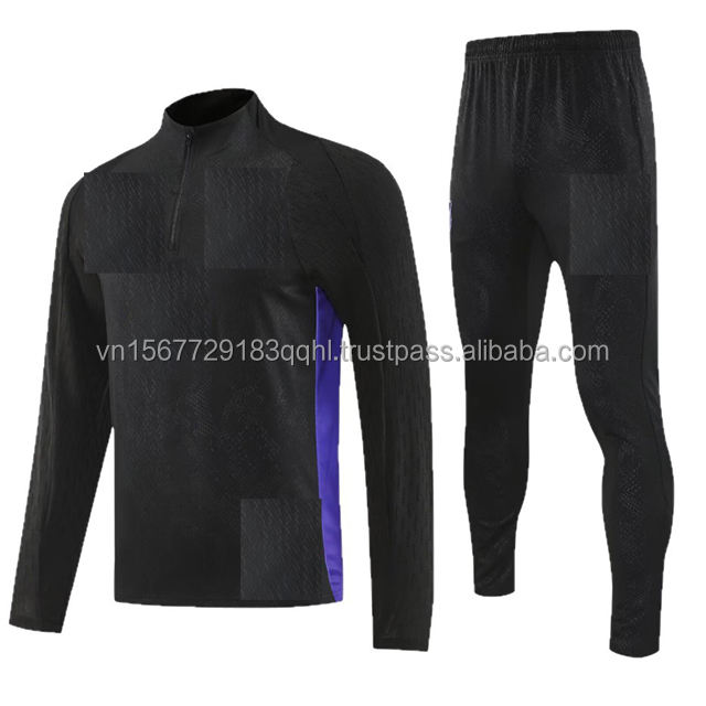 Vêtements d'entraînement de football, maillot de football à manches longues avec demi-zip, pour adolescents, pour les matchs avant le match, imprimé, respirant, anti-UV, séchage rapide