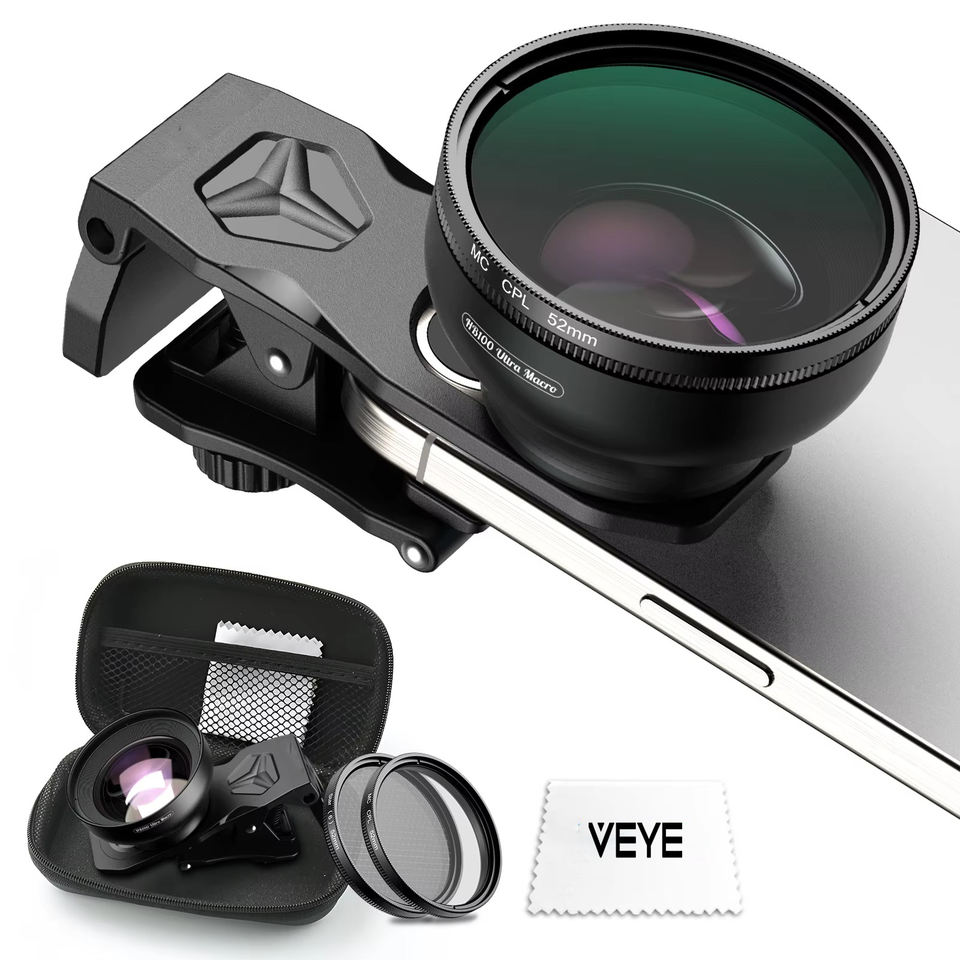 Objectif macro 100 mm avec grossissement 10x, filtres CPL/étoile, fixation universelle pour smartphones iPhone et Pentax