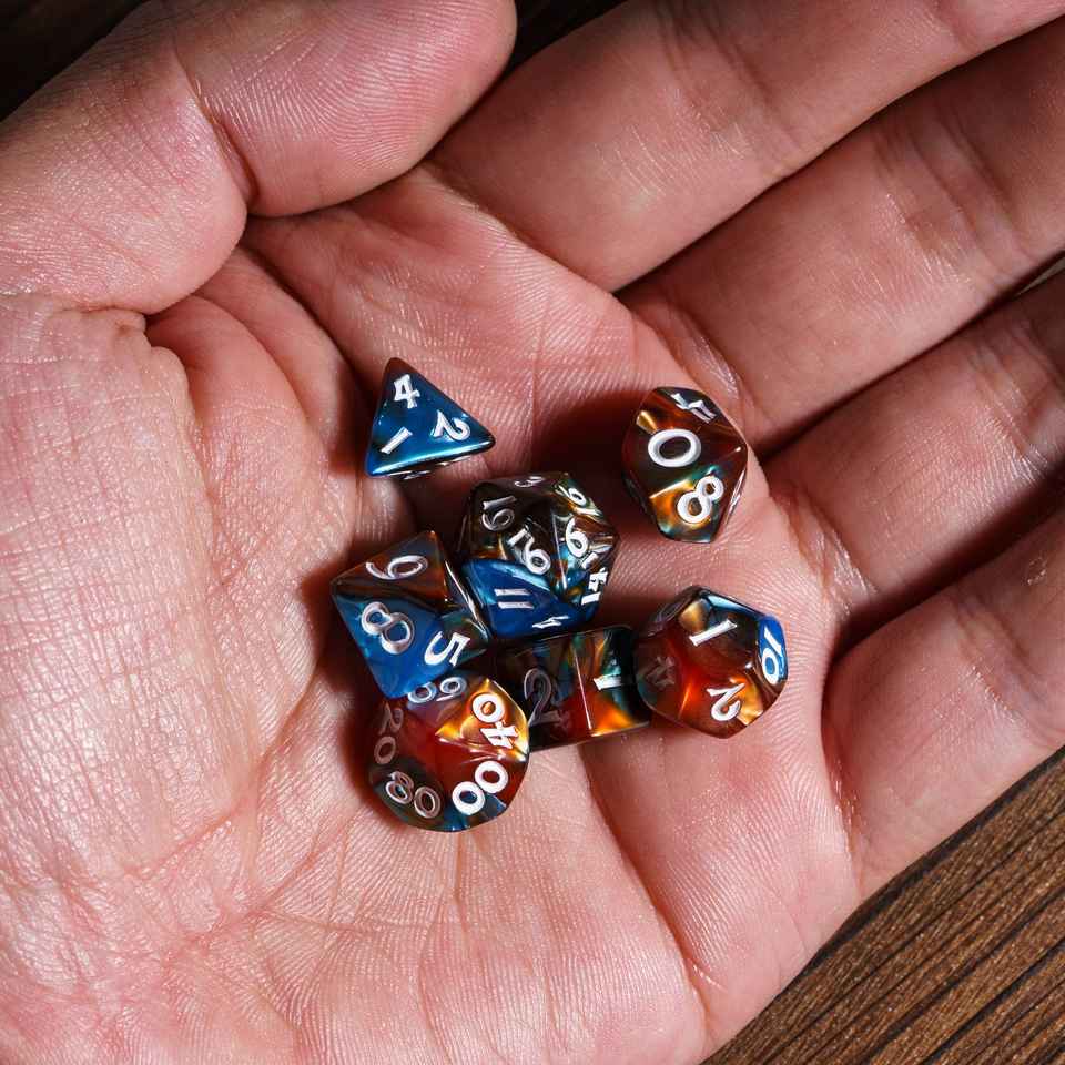 Ensemble de dés DND de 7 pièces en acrylique/plastique durable de couleur mélangée de 10 mm à 13 mm pour les joueurs de jeux de rôle, expériences de jeu personnalisables
