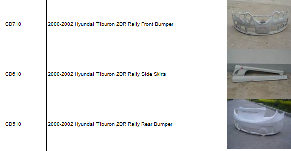 For 2000-2002 Hyundai Tiburon 2DR Rally Bumper Front Bumper Rear Bumper Side Skirts 980