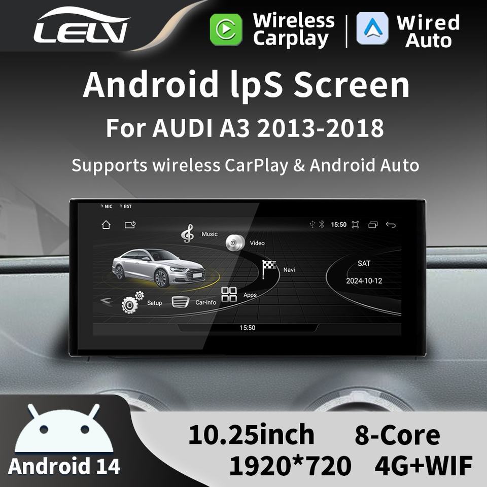 Lecteur DVD de voiture pour Audi A3 2013-2018, écran de contrôle central du tableau de bord, Qualcomm 6125 6225, huit cœurs, Android 14, USB, Carplay, IPS