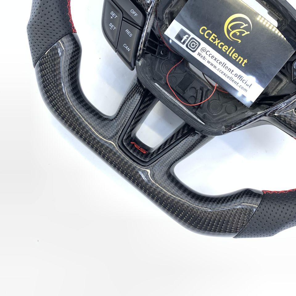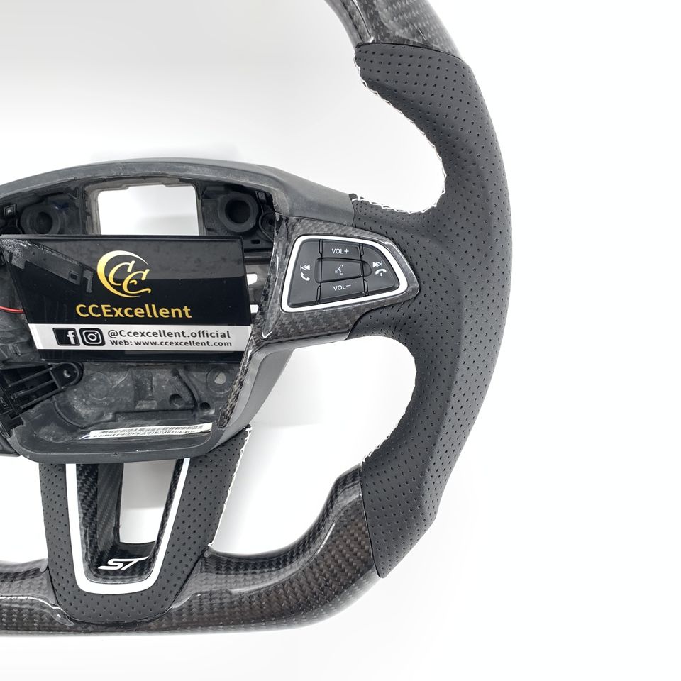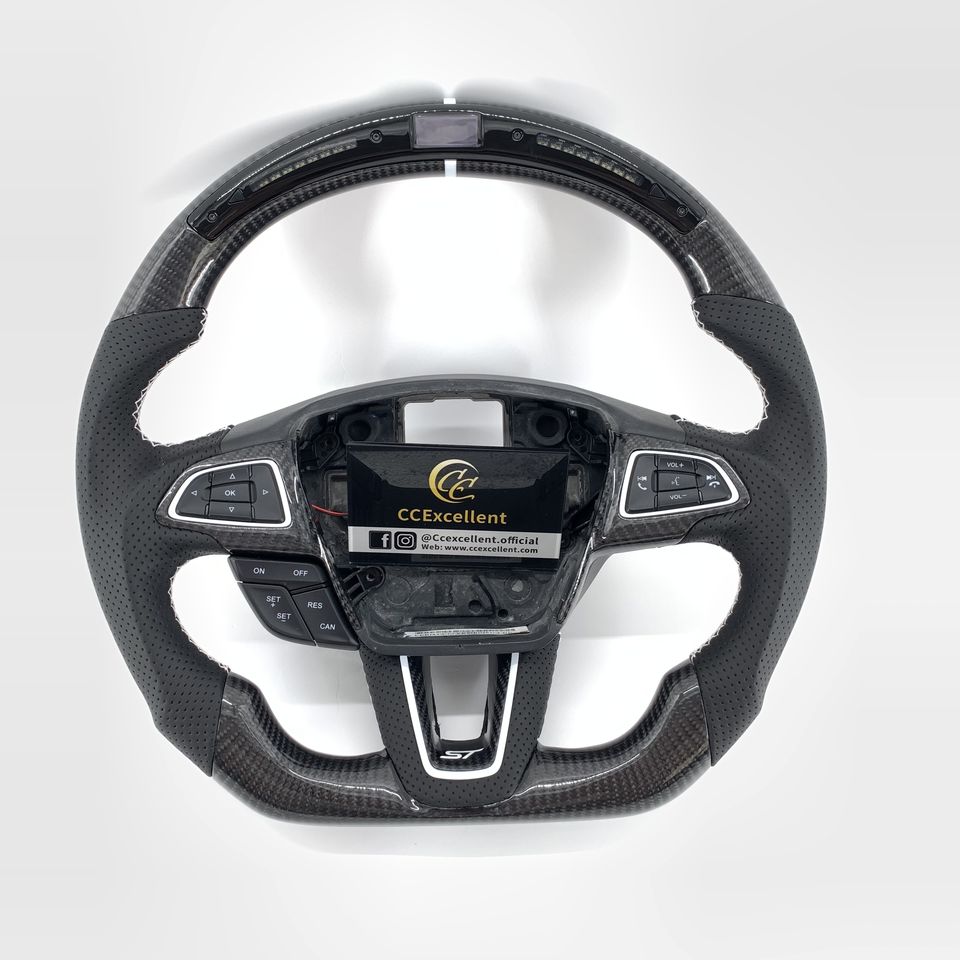 Volant en fibre de carbone véritable avec éclairage LED pour Ford Focus MK3/MK3 RS/MK3 ST/SE 2015 2016 2017 2018