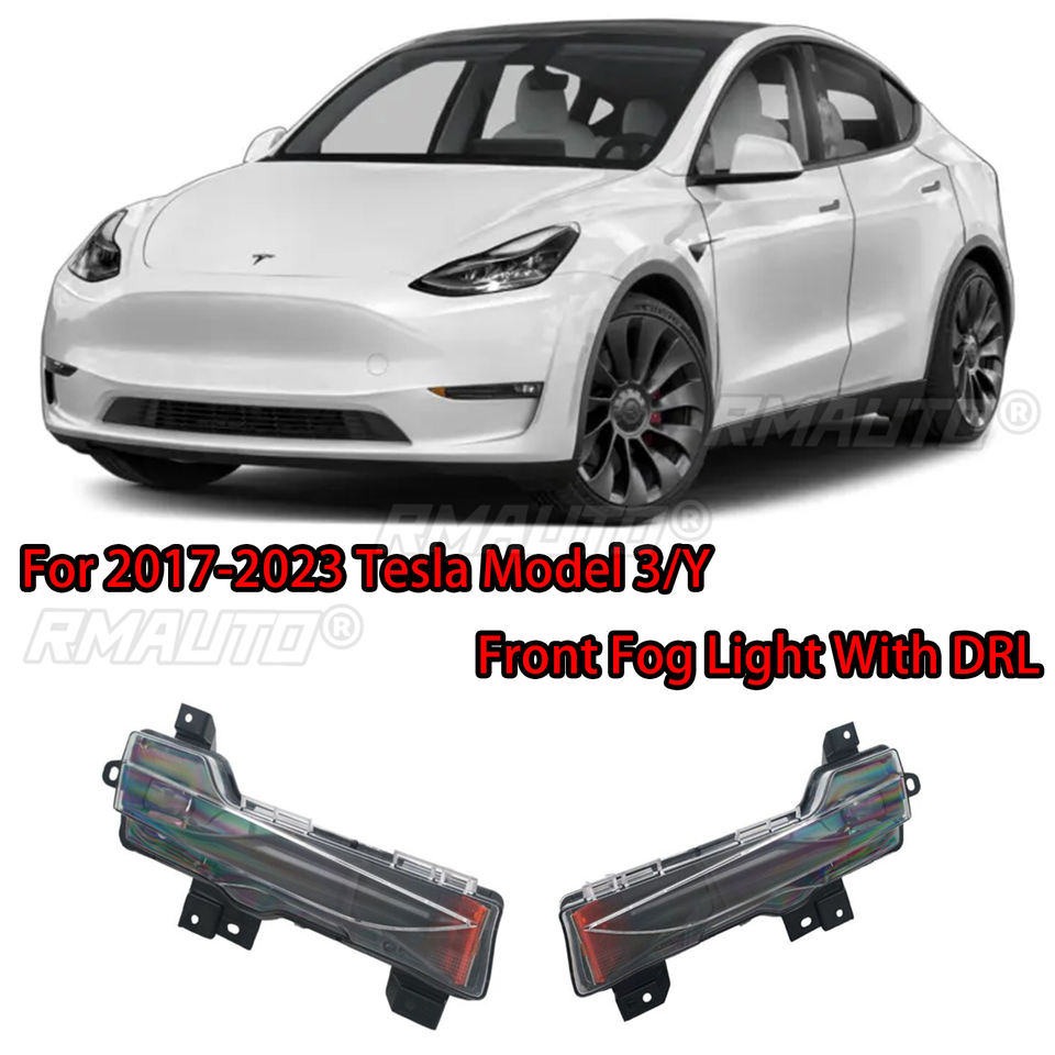 Pour Tesla Model 3 Y 2017-2023, feux antibrouillard LED avec DRL et plaque réfléchissante jaune, version américaine