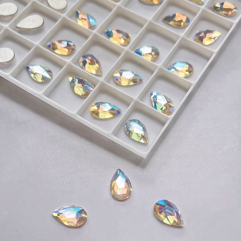 Pour 2303 Strass en verre en forme de goutte à 18 facettes pour la création d'effets 3D glamour, manucure à thème festif DIY