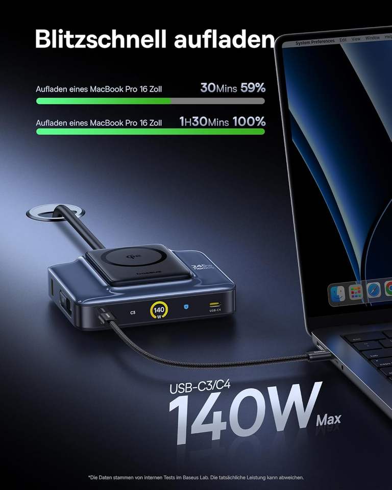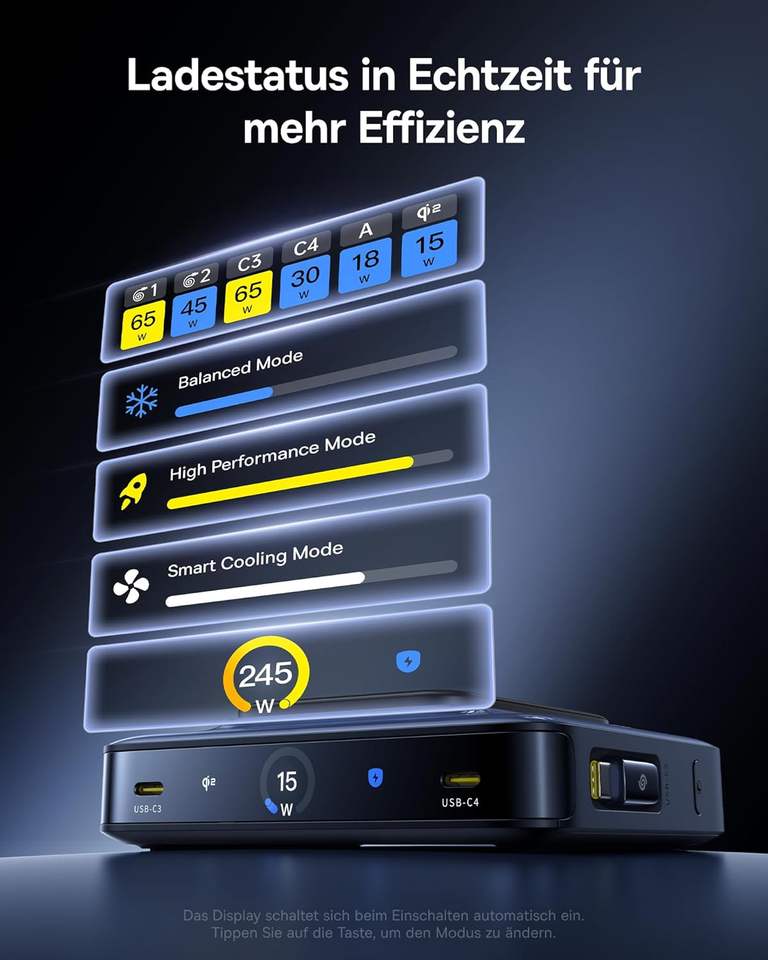 Chargeur rapide USB-C/GaN PD/PPS 245W USB-A pour MacBook Pro/Air, iPad Pro, S24 Ultra, S20 (230V AC)