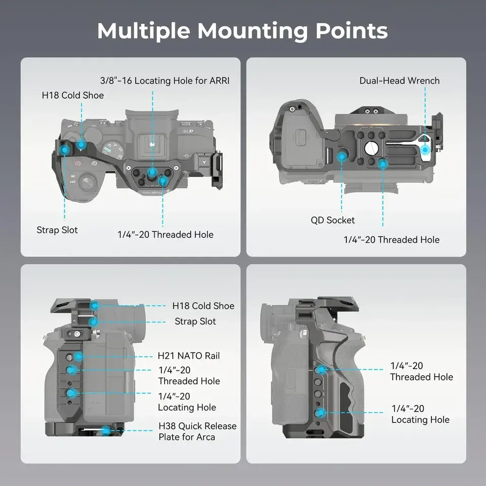 Cage pour appareil photo à dégagement rapide en alliage d'aluminium HawkLock pour Alpha 7R V/7 IV/7S III/1/7R IV