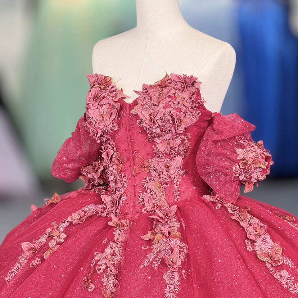 For 6823 Vintage Glitter Red Sweetheart Natural Waistline Eco-Friendly Floor-Length Party Ball Gown Quinceanera Evening Gowns