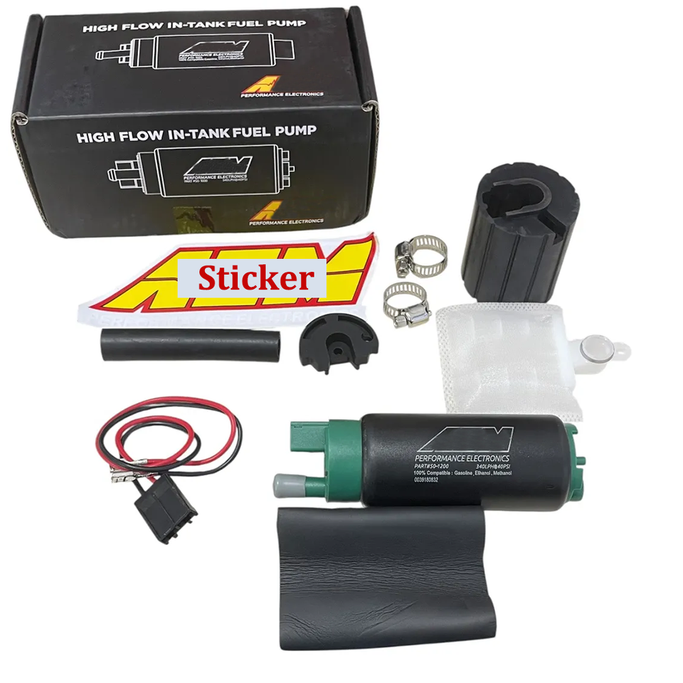 Pompe à Carburant Haute Pression Immergée 340 LPH pour Éthanol A-EM 50-1200 E85 Méthanol, avec Autocollant A-EM + Kit d'Installation Éthanol