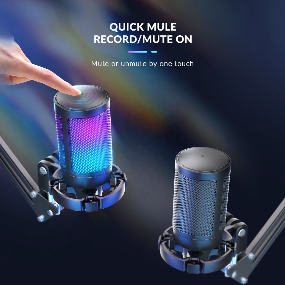 Microphone à condensateur, Léger, Micro USB, Avec éclairage RVB, Portable, Réduction de bruit, Avec LED lumières