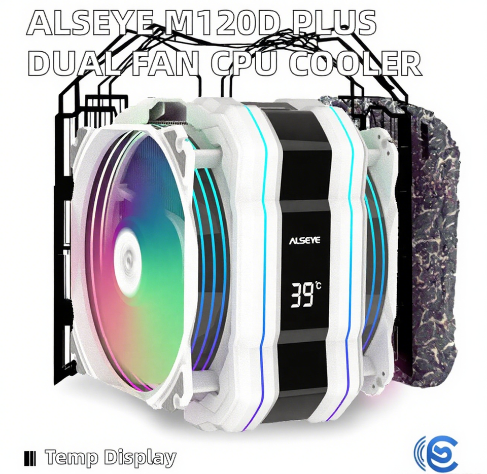 Pour ALSEYE M120D Plus refroidisseur de processeur à double ventilateur blanc avec affichage numérique de la température pour boîtier de PC de jeu