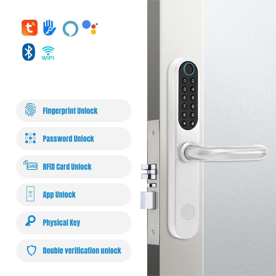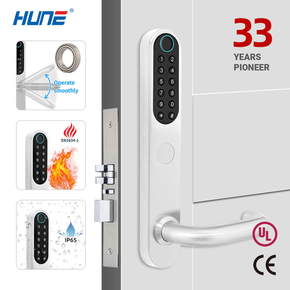 Serrure électronique intelligente en acier inoxydable 304 pour porte en bois, conforme à la norme ANSI, avec lecteur d'empreintes digitales, carte et NFC, pour portes coupe-feu