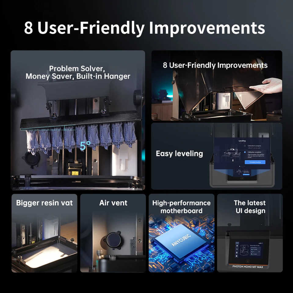 Bonjour! Imprimante 3D Photon Mono M7 Max AE Version 7K 14.7L à volume ultra-large pour résine, avec plateau chauffant en verre trempé et technologie DLP LCD