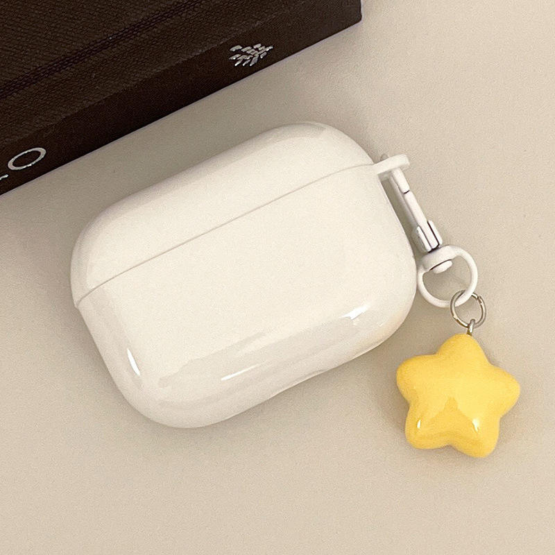 Pour AirPods 1/2/3/Pro Jelly White Case avec pendentif étoile jaune Design mignon Housse de protection en TPU souple