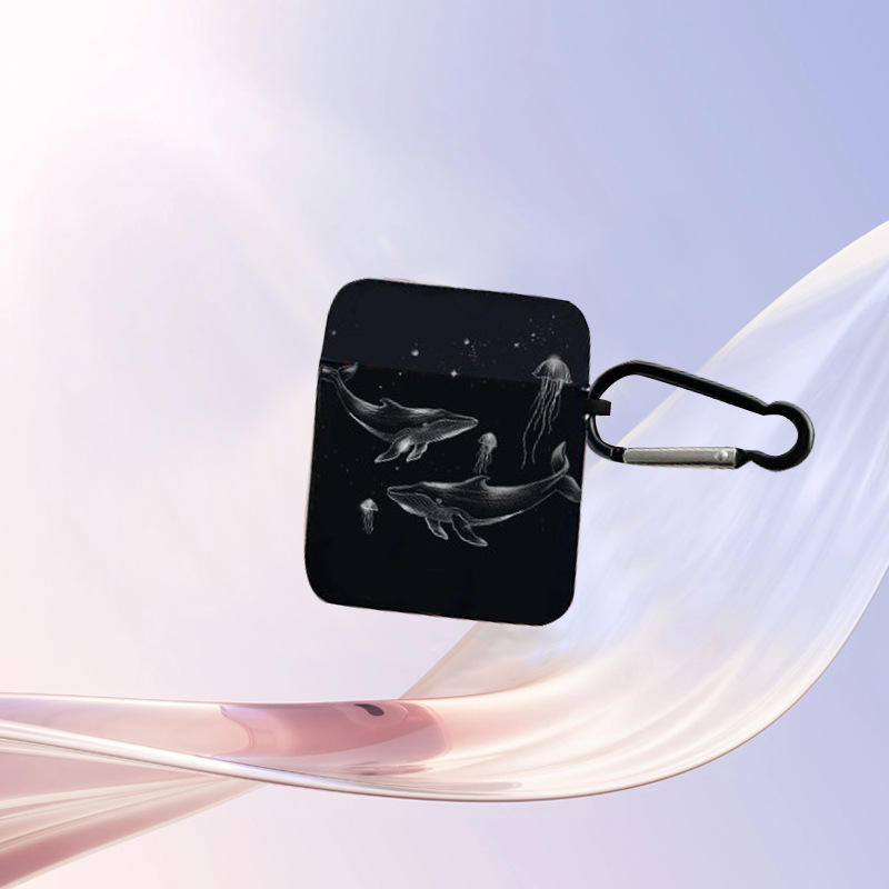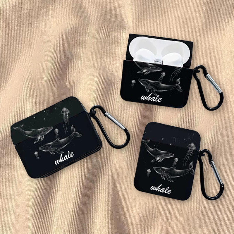 For AirPods 4/1/2/3/Pro Black Protective Case with Whale Pattern Secure Clip Shockproof Full Cover Easy to Carry Design