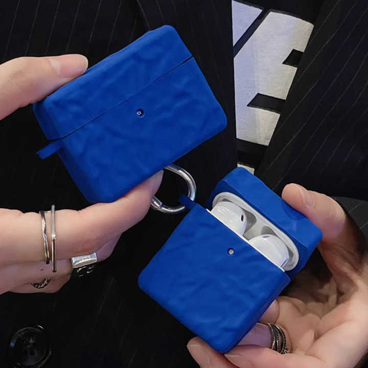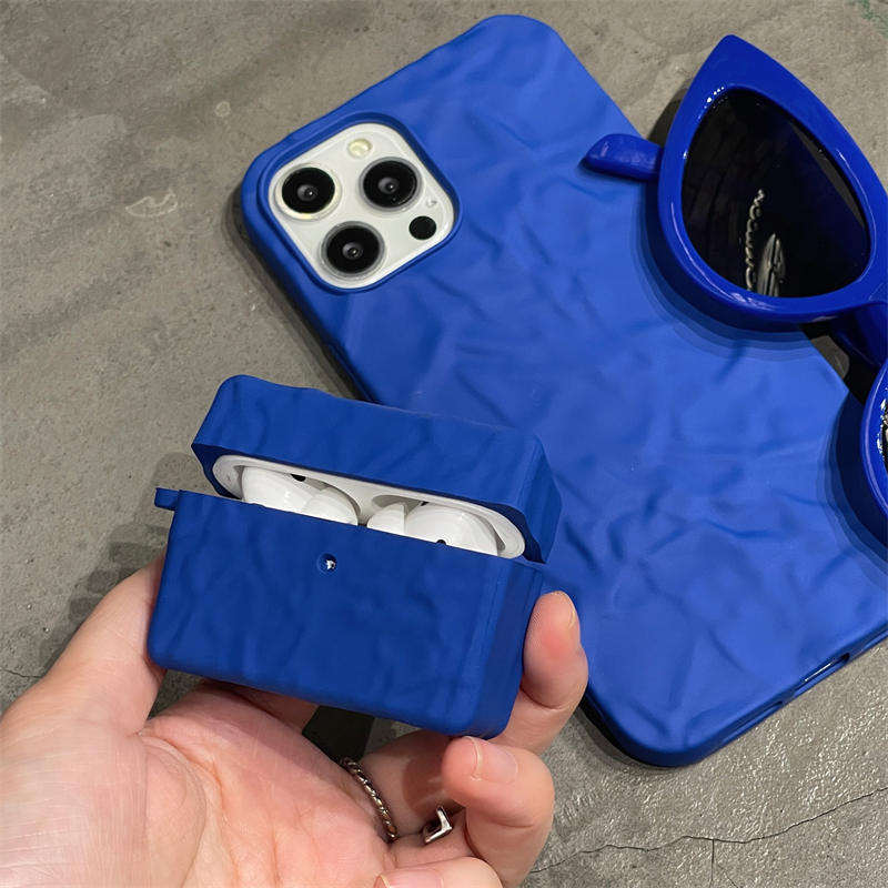 Étui Airpods Pro bleu mat et froissé pour Apple Airpods 1 2 3, boîtier de chargement pour écouteurs sans fil