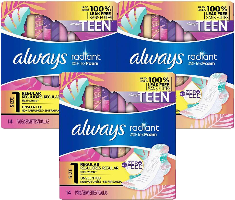 Pour Always Radiant Taille 1 Coussinets féminins réguliers avec ailes 42 pièces Coton respirant parfumé