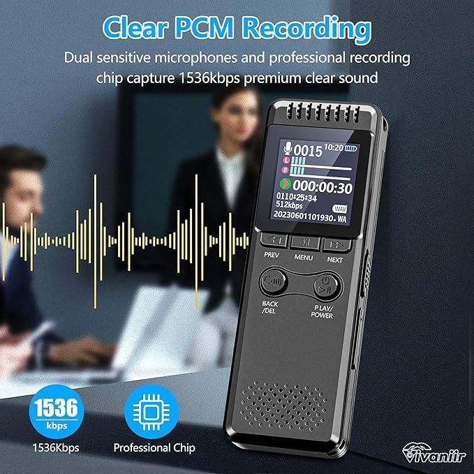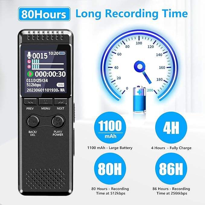 Pour Amazon 32GB Enregistreur vocal numérique avec 80 heures d'enregistrement Grand écran couleur Plusieurs langues Enregistreur audio en un clic