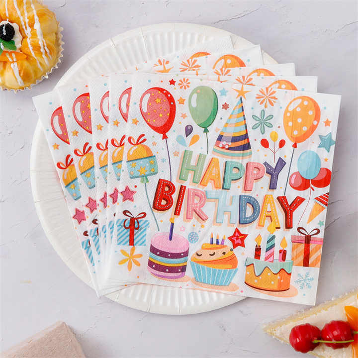 Pour Amazon vente chaude transfrontalière serviettes en papier jetables ballons imprimés colorés serviettes carré pour les vacances d'anniversaire