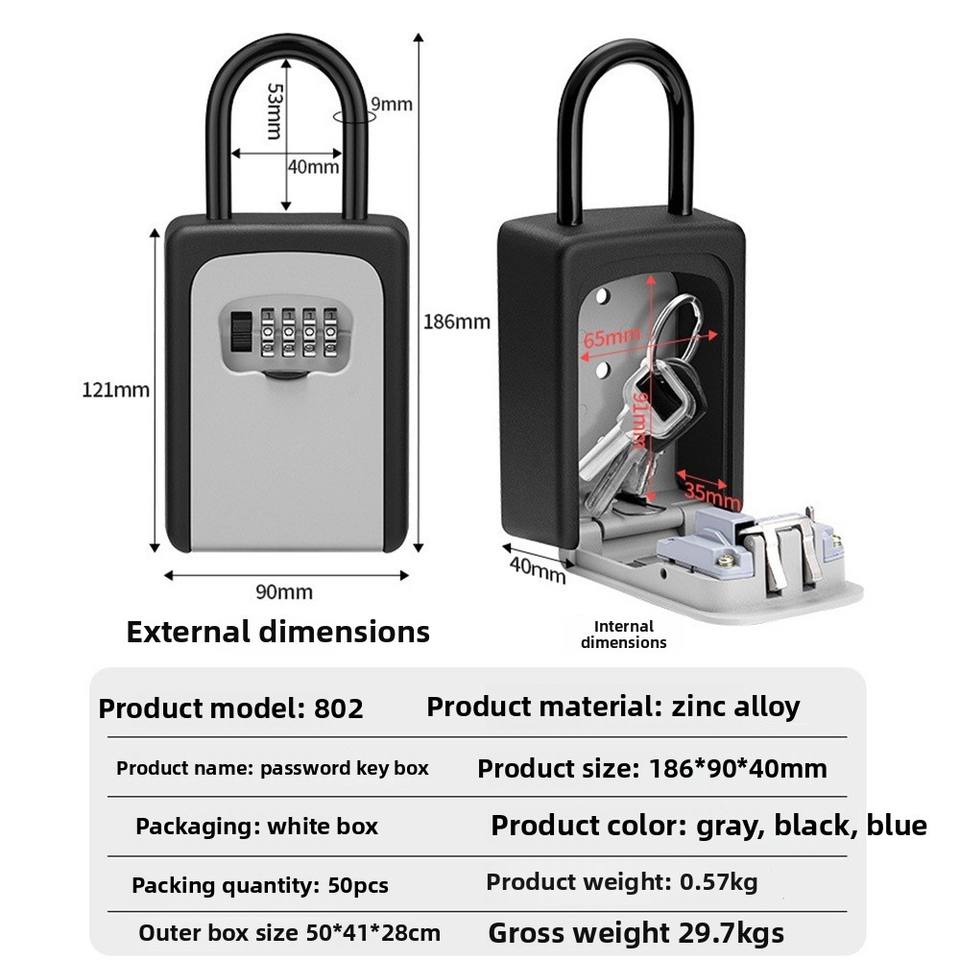 Pour Amazon transfrontalier grand espace étanche antivol en métal serrure boîte murale B & B extérieur mot de passe clé coffre-fort