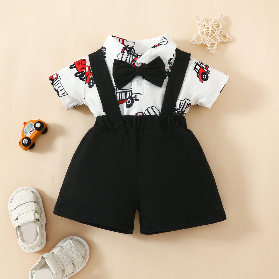 Pour Amazon mignon bébé garçon Gentleman noeud papillon camion haut Shorts à la mode été à manches courtes veste bretelles costume tricoté tissu