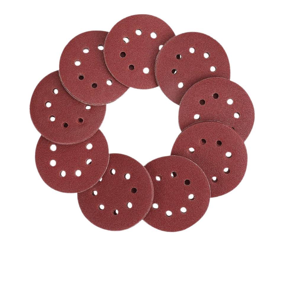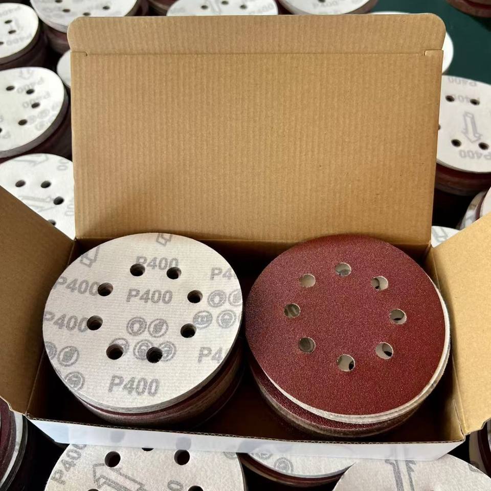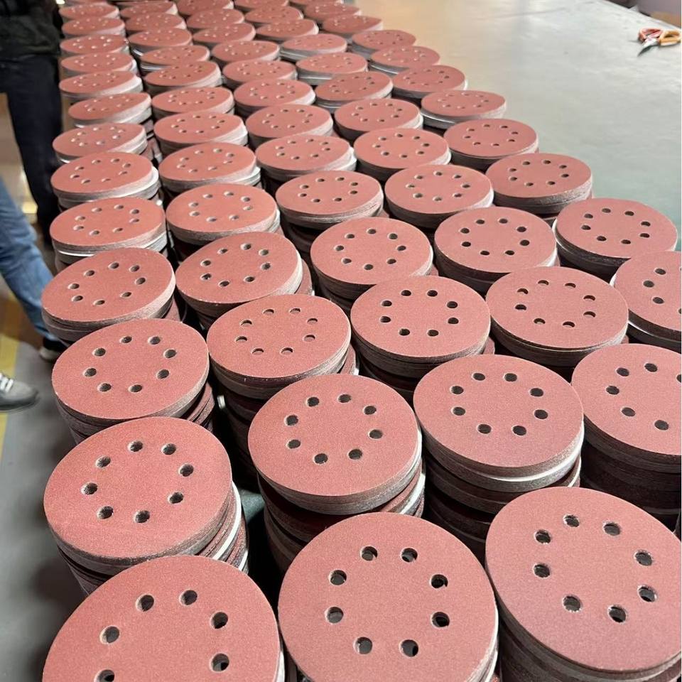 Pour Amazon vente chaude 5 pouces 8 trous sable rouge alumine papier de verre poli 125mm dos velours ponceuse disque combinaison disque abrasif