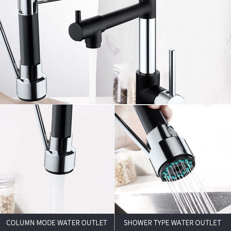Pour Amazon vente chaude or noir LED robinet de cuisine multi-fonctionnel monté sur le pont rotatif extractible vanne en céramique dosée Fauc