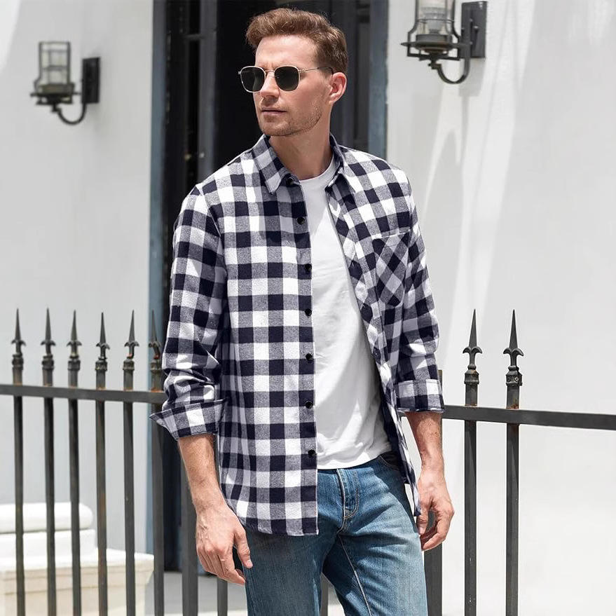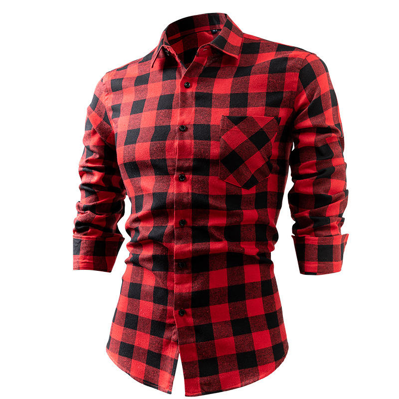 Pour Amazon Chemise en flanelle décontractée à manches longues pour hommes Plaid brossé Vente chaude Style transfrontalier Fermeture à simple boutonnage pour
