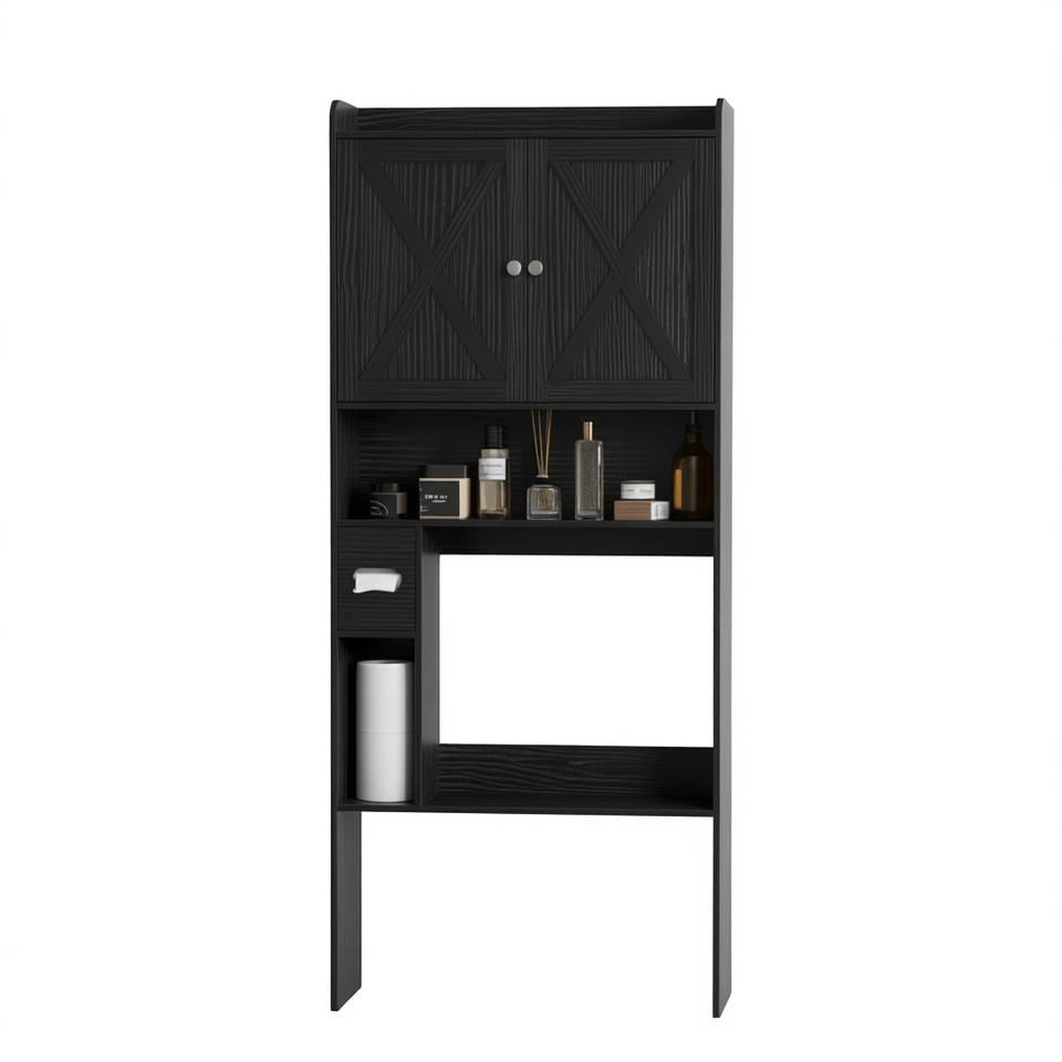 Meuble de salle de bain en bois de 24 pouces de large, style farmhouse, étagères gaines de place avec miroir et rangement