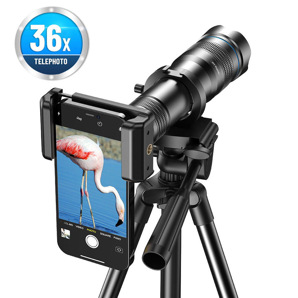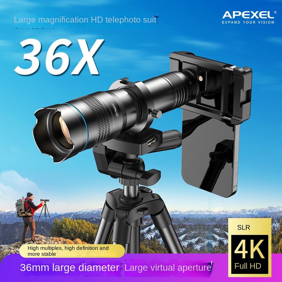 Support de trépied externe pour photographie HD tout en métal Apexel, objectif téléobjectif 36x pour téléphone portable, compatible avec la plupart des smartphones