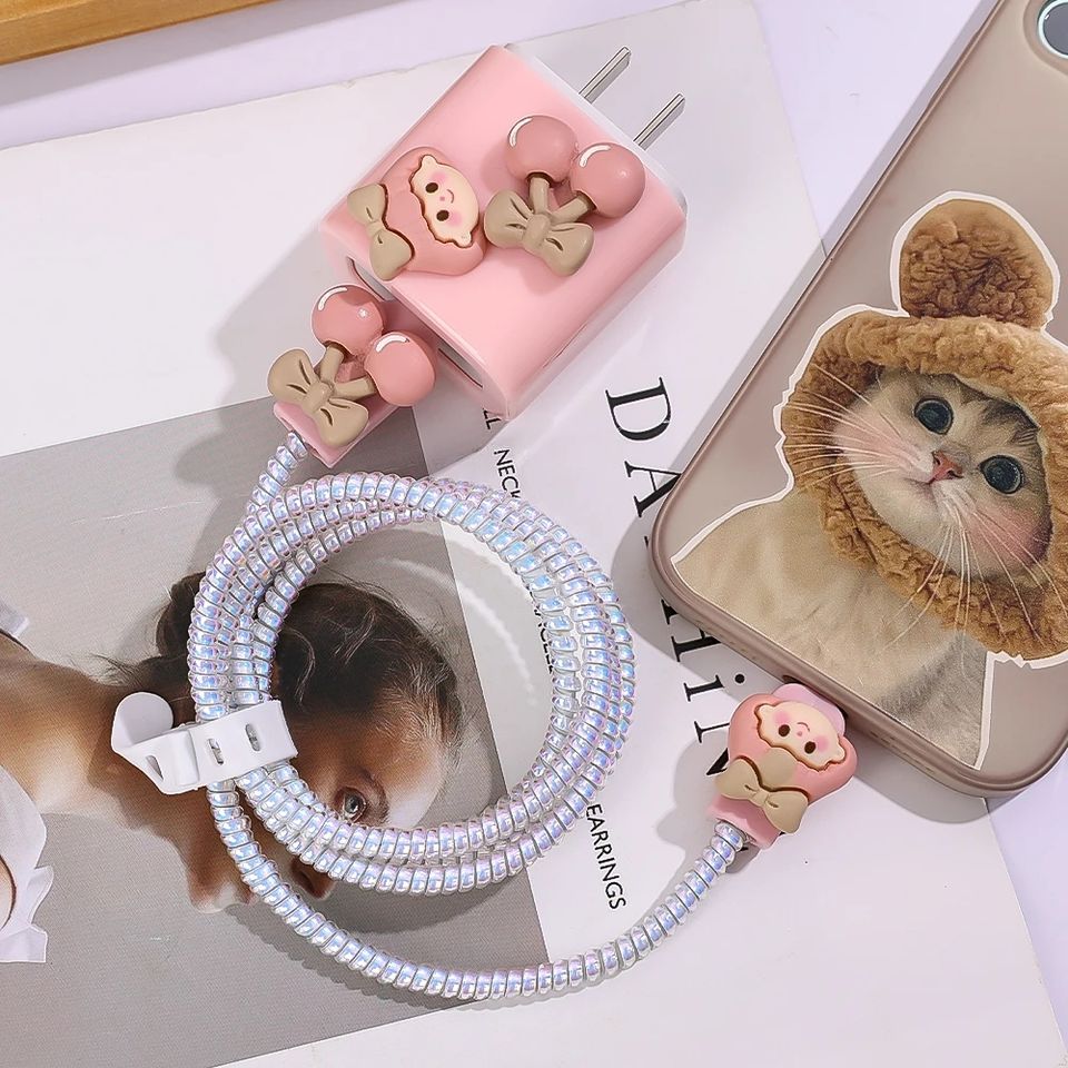 Pour Apple 18W 20W chargeur housse de protection dessin animé cerise étui pour IPhone 14 13 12 11 Pro Max XR XS X protecteur de tête de câble de données