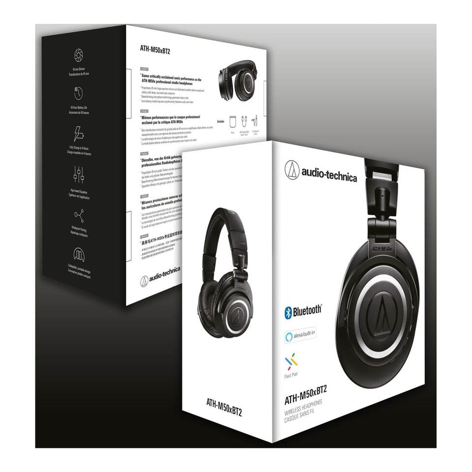 Pour Audio Technica M SERIES Studio pour casques Bluetooth avec microphone, intra-auriculaires et supra-auriculaires, noir ATH M50XBT2 0845017