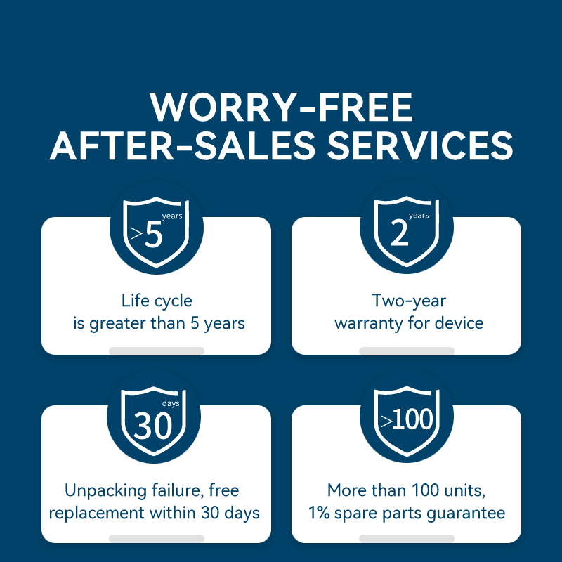 Centre d'appels et Support technique en ligne, Formation sur site et D'inspection, Pièces de rechange gratuites, Le retour et le Remplacement, Réparation