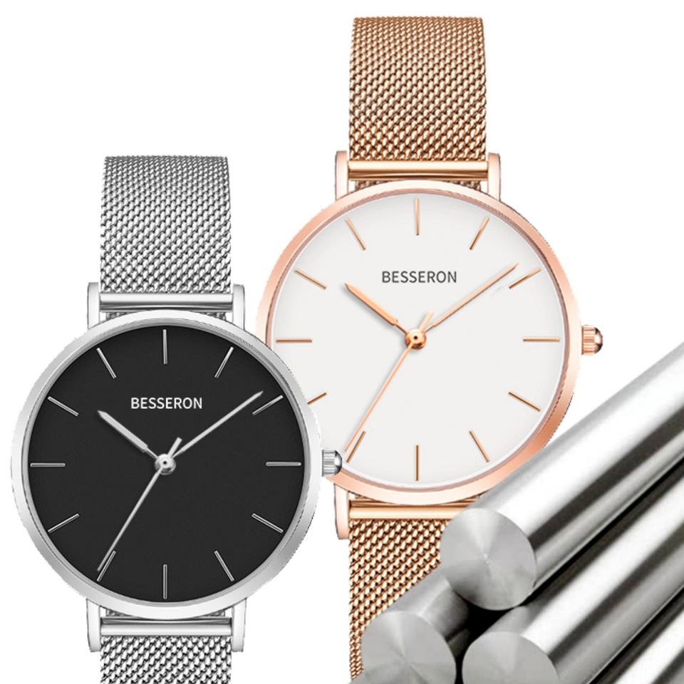 Montre-bracelet pour homme BESSERON 42 mm en acier inoxydable, design minimaliste or rose, mouvement Ronda, logo personnalisé, bracelet en cuir 20 mm de large