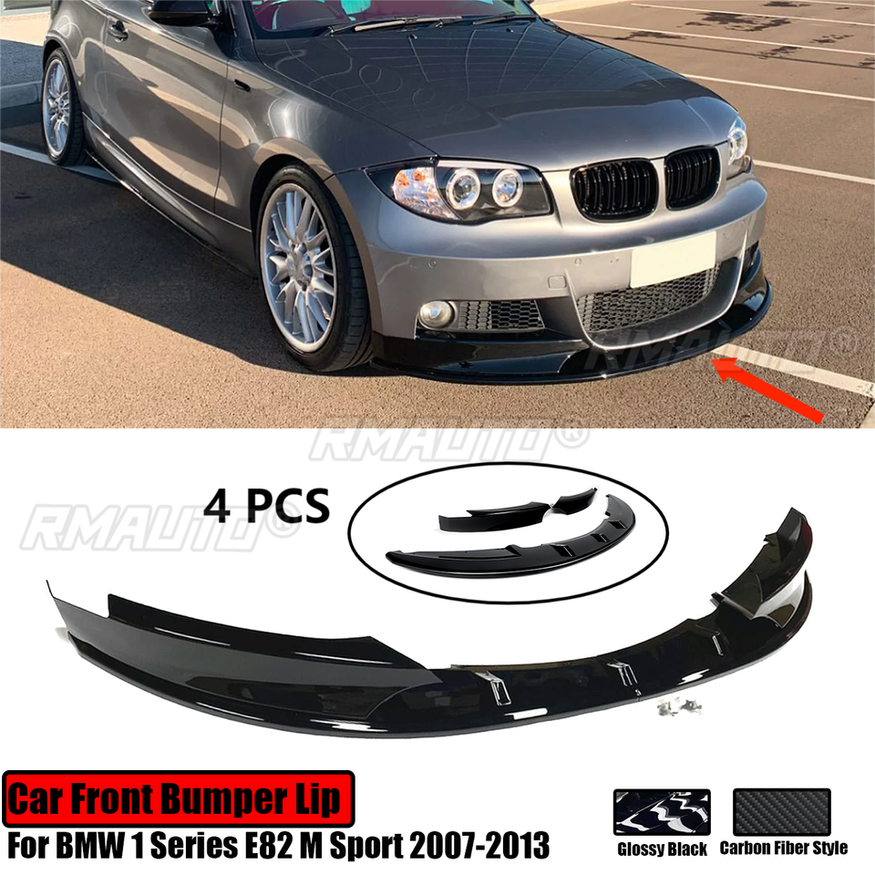 Pour BMW Série 1 E82 M Sport 2007-2013, lèvre de pare-chocs avant, aileron latéral, séparateur, garniture, style fibre de carbone noir brillant