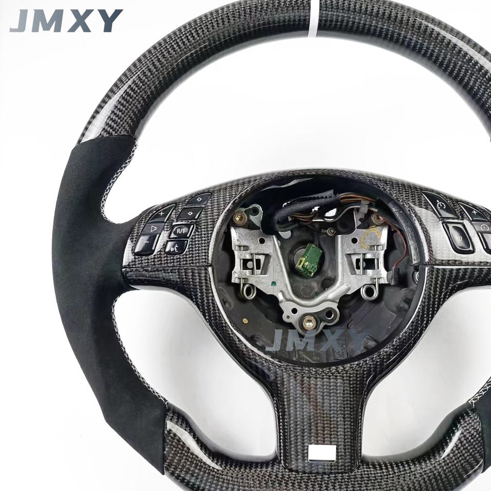 Jiangmen Xingyi Volant sport en fibre de carbone, LED intégré, formes D/plat/F1, BMW E46, garantie 12 mois, 1 pc