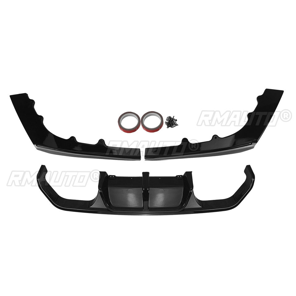 Pour BMW F80 M3 F82 F83 M4 2015-2020 Diffuseur arrière noir brillant/aspect fibre de carbone + Spoiler avant, lames de séparation, kit carrosserie