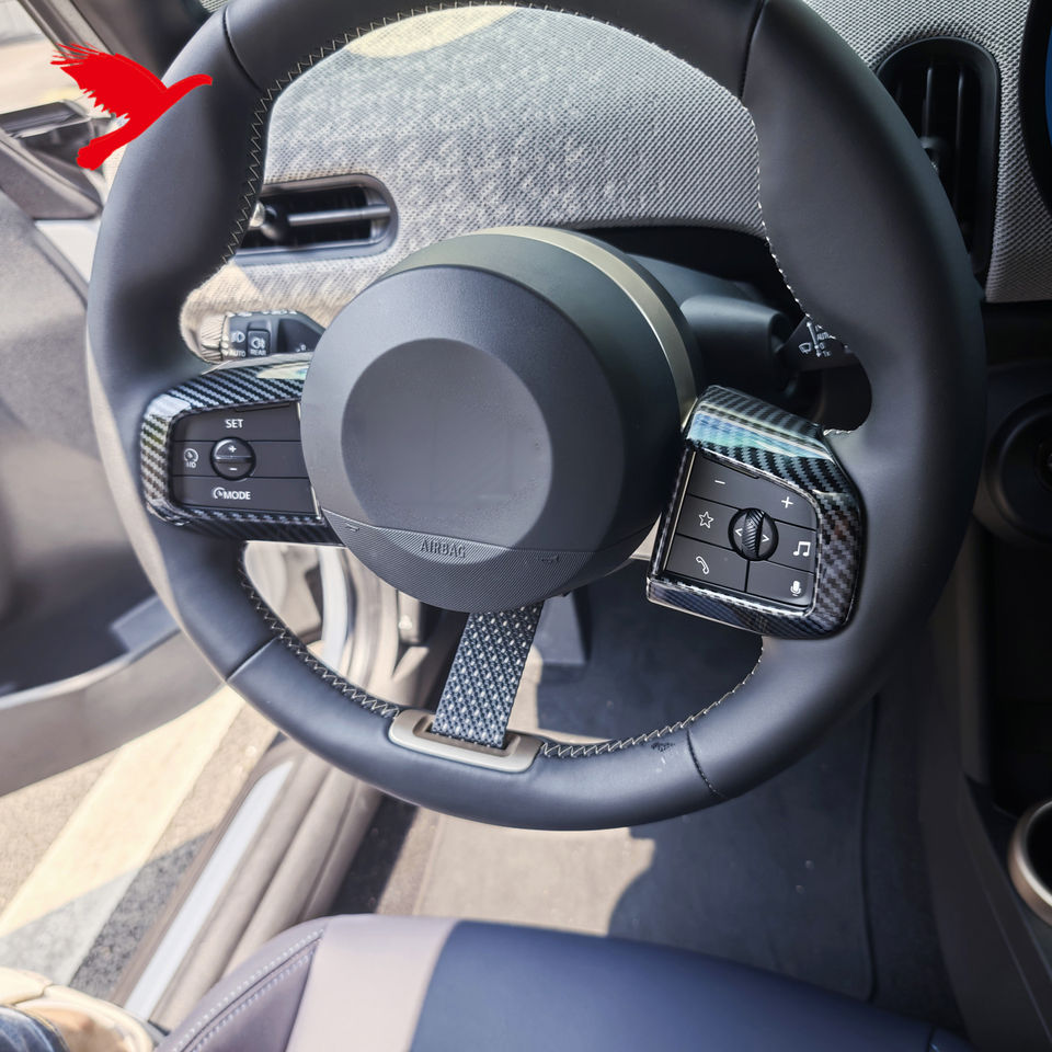 Pour BMW Mini Cooper F65 5 portes F66 3 portes F67 3 portes 2025 volant autocollant décoratif couverture garniture ABS carbone noir 2 pièces