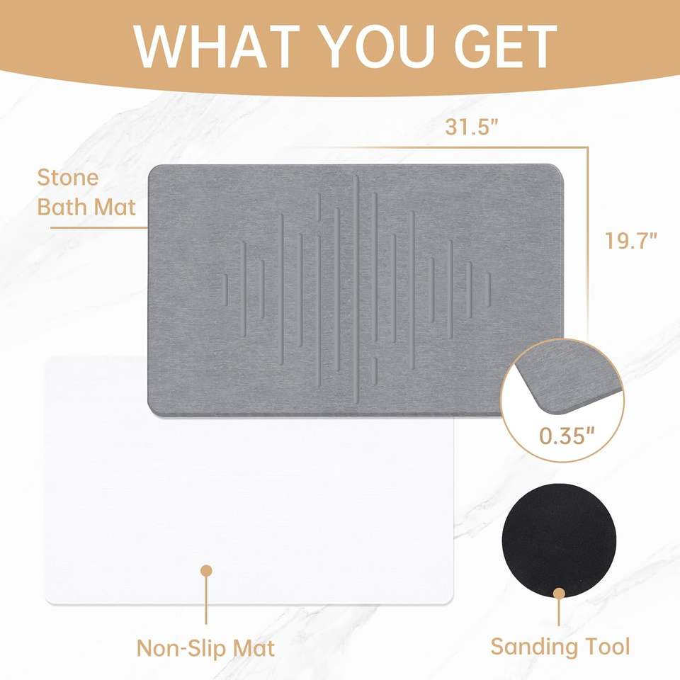 Tapis de bain en pierre de diatomite super absorbant et antidérapant pour salle de bain, séchage rapide