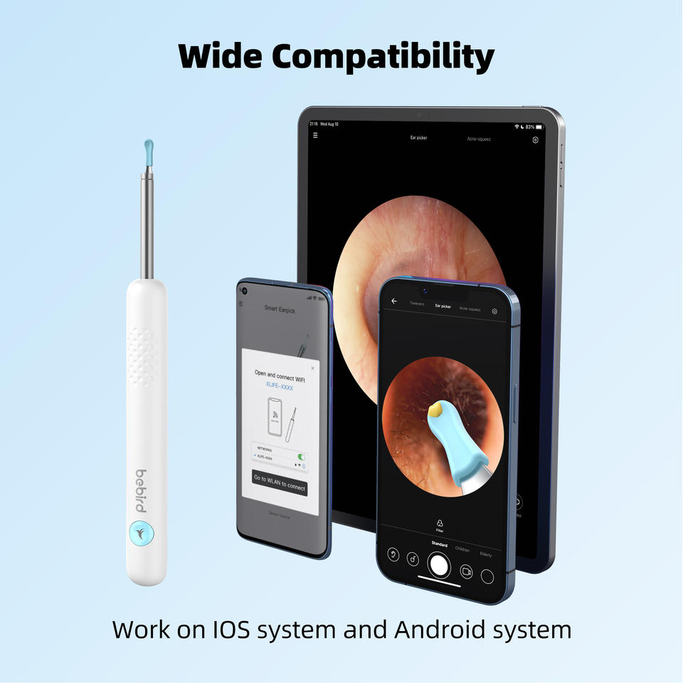 Pour Bebird Soft & Safe Bâtons de cire d'oreille en silicone Caméra d'oreille WiFi intégrée se connecte au téléphone portable Earpick efficace pour l'enlèvement