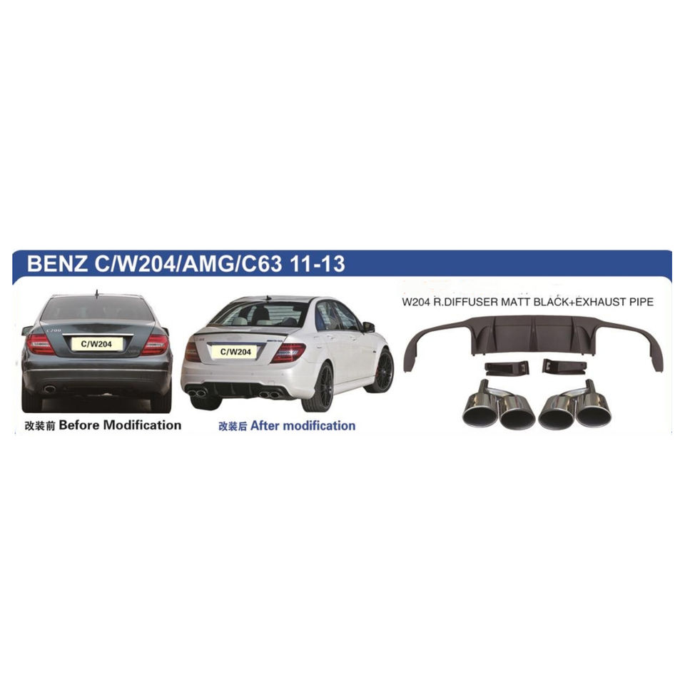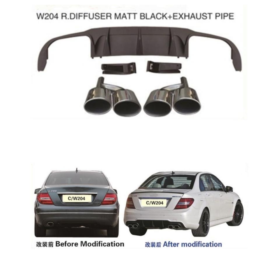 Pour Benz W204 Diffuseur arrière Noir mat et tuyau d'échappement Style AMG 2011-2013