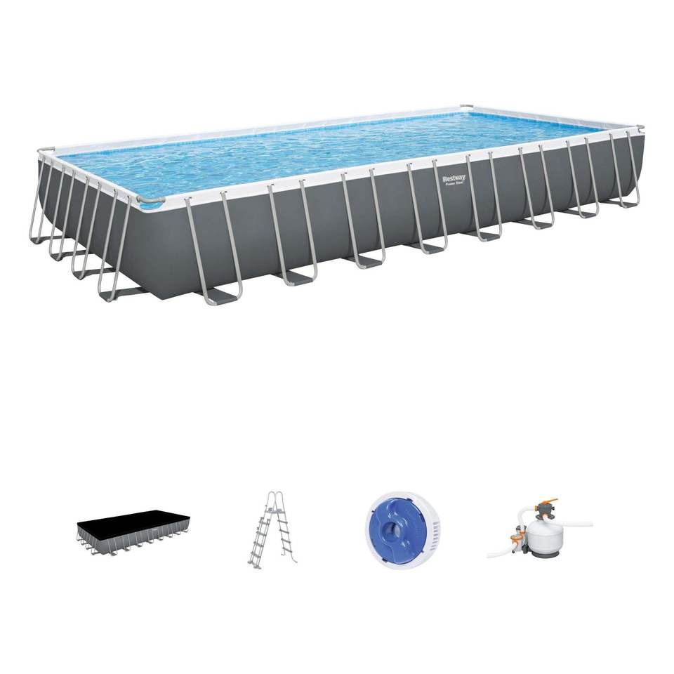 Piscine Bestway avec pompe à sable (956x488x132cm) 56623 5 pour 8-10 personnes POWER STEEL Gris 56623 5 pour propriétaires de piscines