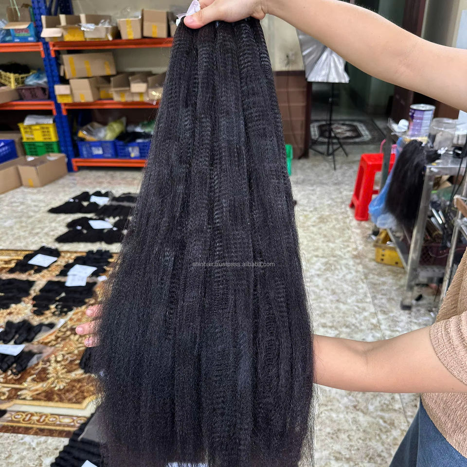 For Black Women Kinky Straight Yaki Hair Weave,High Quality Straight Shoulder Length Hair Style,Grade 12A Vietnam Hair Weaves