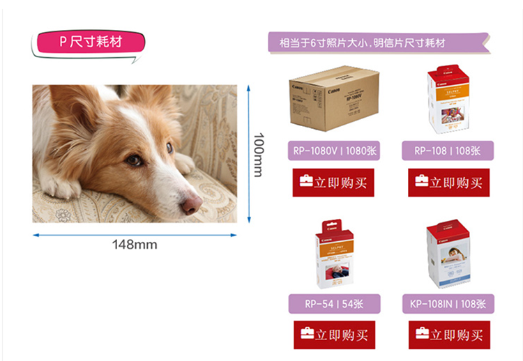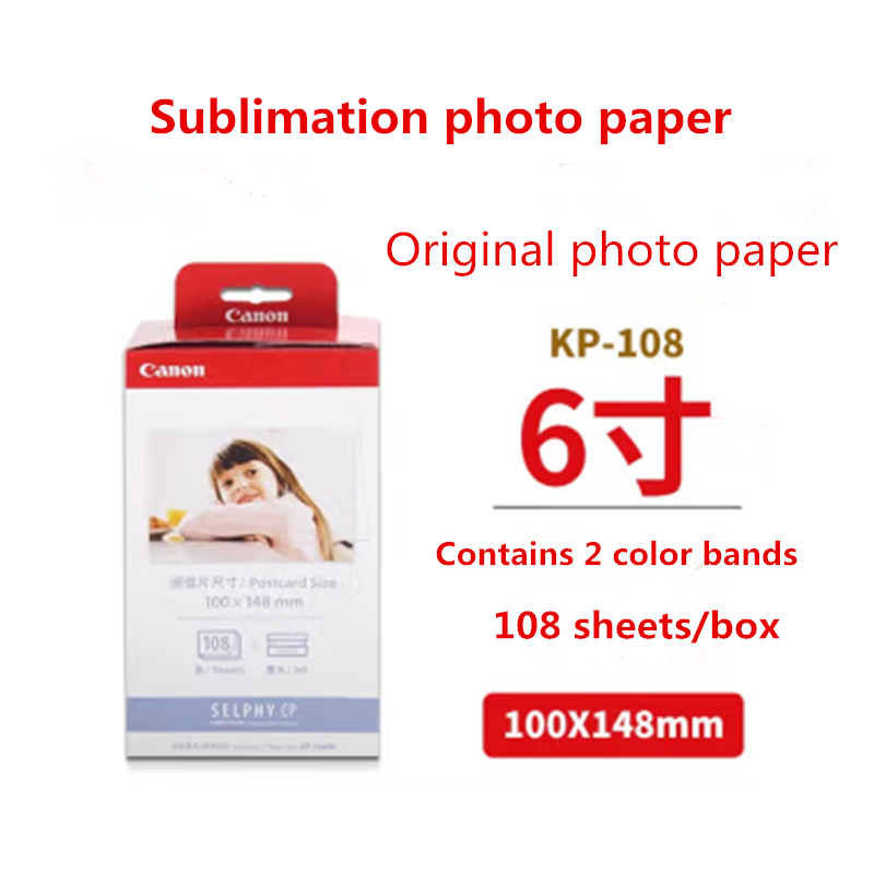 Pour Canon CP1500 1300 1200 Cartouche de papier photo par sublimation 3 pouces 5 pouces 6 pouces Ruban d'imprimante Papier photo couleur Kp108