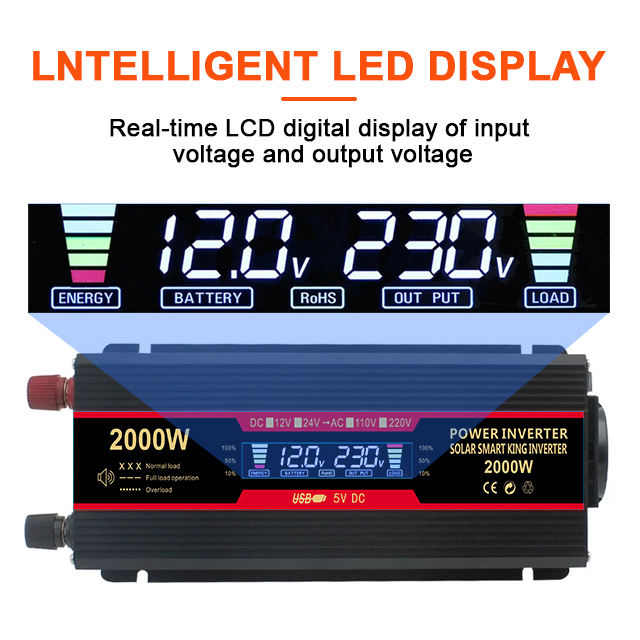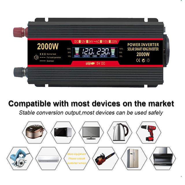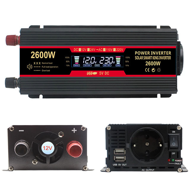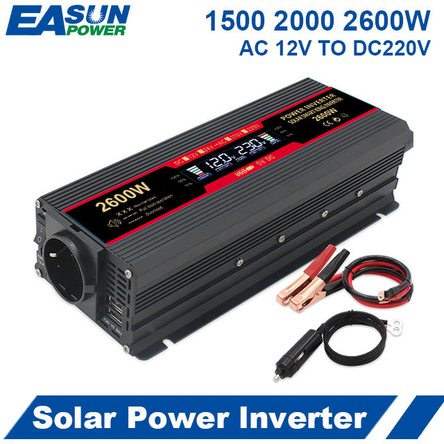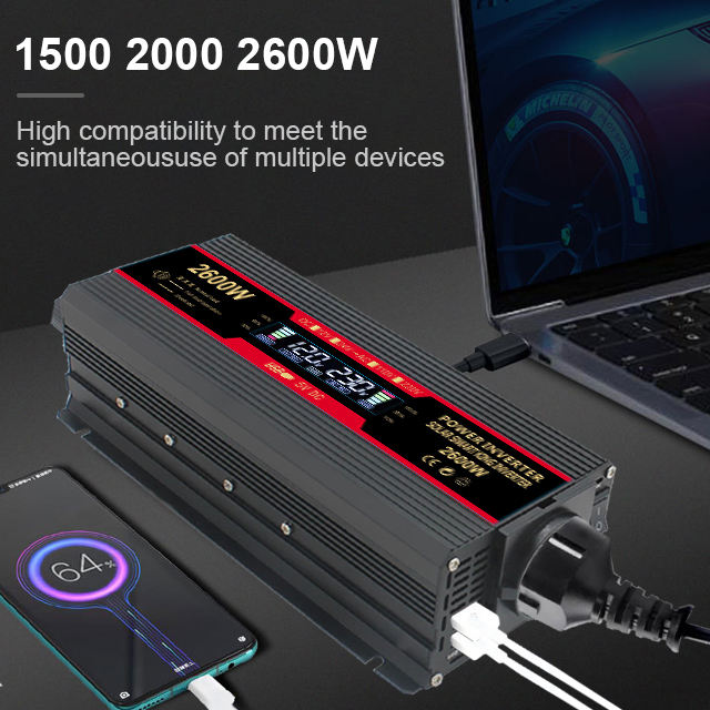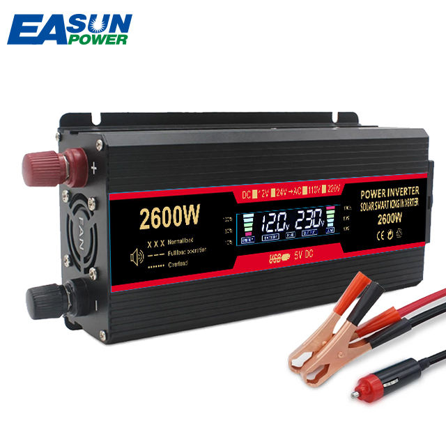 Convertisseur de courant pour voiture DC 12V vers AC 220V 2000W 2600W Onde sinusoïdale pure Sortie simple 3.1A Double USB 90% d'efficacité