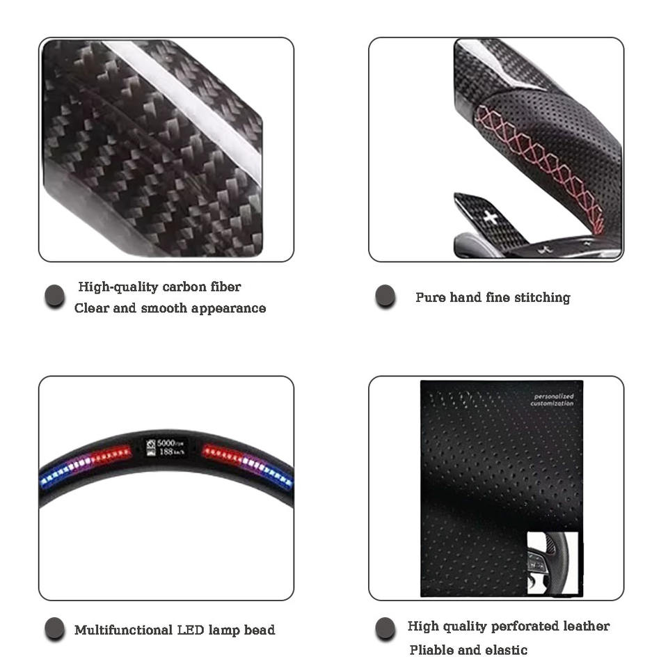 Pour Chevrolet Corvette C7 Camaro SS ZL1 2014-2018 tr/min volant en Fiber de carbone personnalisé en cuir perforé