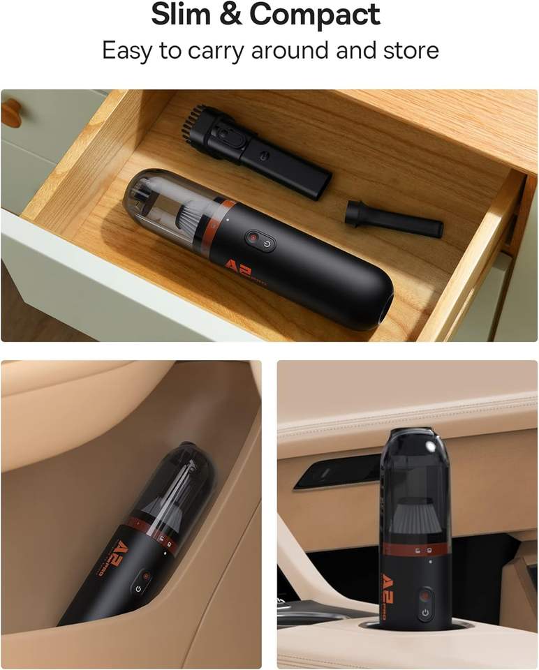 Aspirateur à main sans fil rechargeable A2 Pro noir 120 millilitres 70 décibels pour utilisation sur tapis